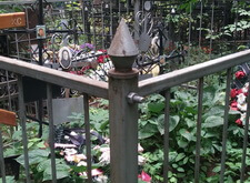 Обустройство с нуля могилы с очень высокой оградой. Земля на этом кладбище очень хорошая для различной растительности и в любое теплое время года здесь всегда растут сорняки, поэтому открытая земля на подобных кладбищах – это причина огородных работ на могиле, когда бы вы не пришли. Исходное состояние могилы далее.