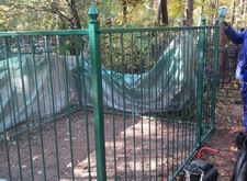 Далее мы закрыли соседние участки полиэтиленом и приступили непосредственно к грунтовке и окраске ограды.